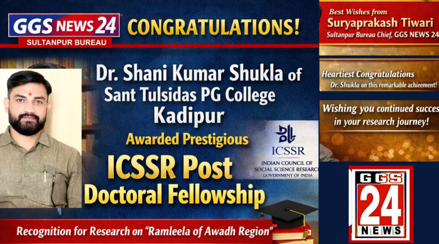 संत तुलसीदास पीजी कॉलेज कादीपुर के डॉ शनि कुमार शुक्ल को ICSSR की प्रतिष्ठित पोस्ट डॉक्टोरल फेलोशिप