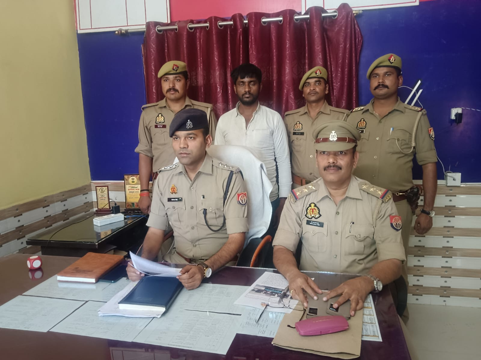 घोसी पुलिस ने पिता के हत्यारोपी को आला कत्ल के साथ गिरफ्तार कर किया चालान