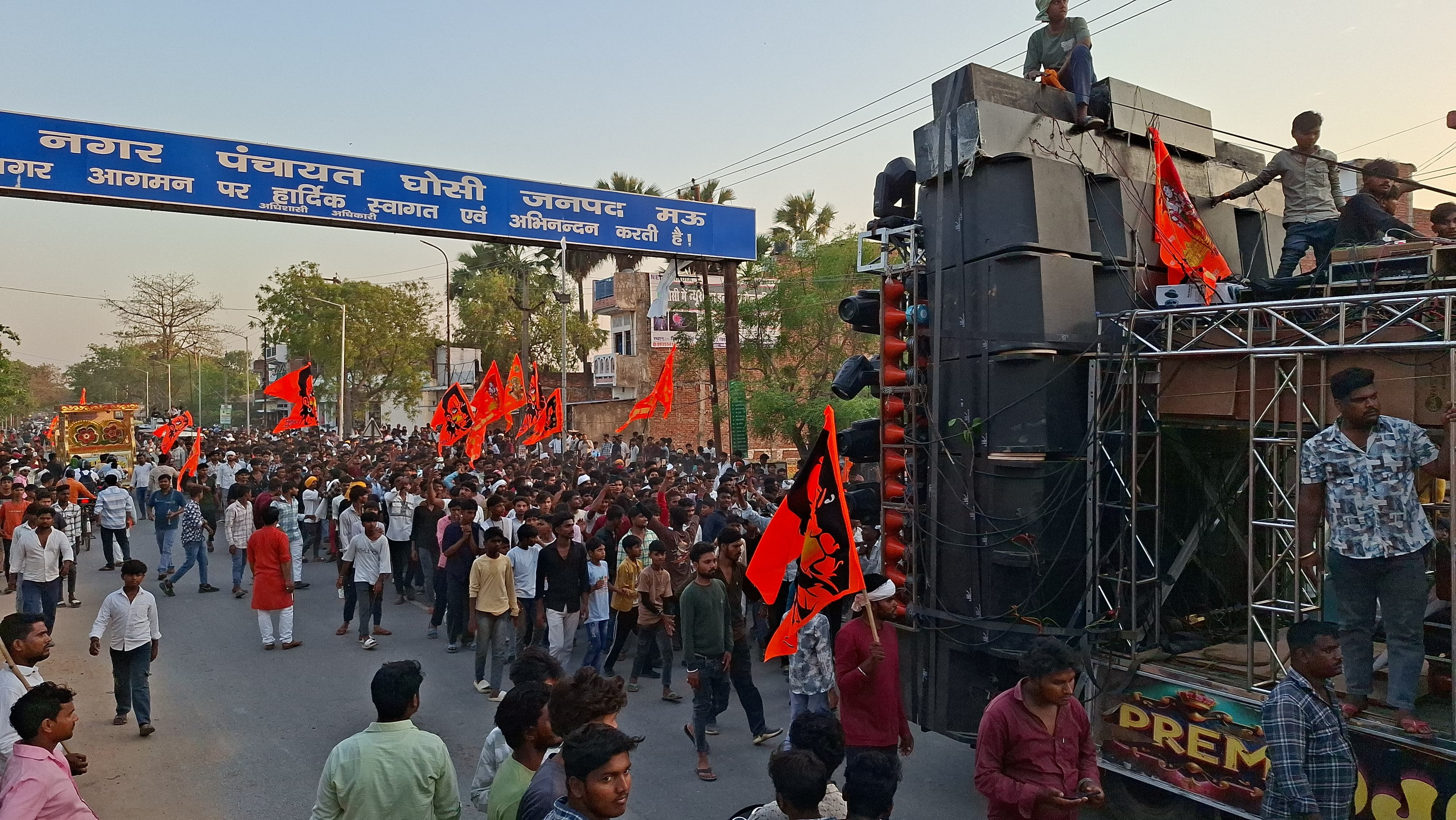 घोसी नगर में निकाली गई भव्यशोभा यात्रा। हनुमानजी से मांगी सुख शांति सौहार्द।