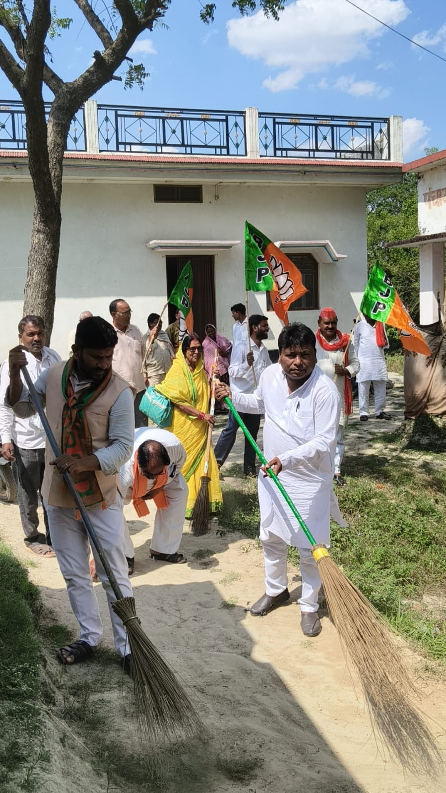भाजपा के गांव/बस्ती चलो अभियान के तहत भाजपा नेताओं ने स्वच्छता अभियान के साथ लाभार्थियों का किया सम्मान