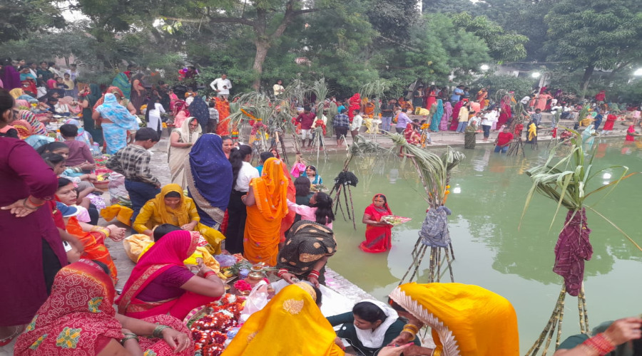 बूढ़नपुर तहसील क्षेत्र के नरफोरा गांव निवासी बेसिक शिक्षा अधिकारी अलीगढ़ डॉक्टर राकेश सिंह छठ पूज...