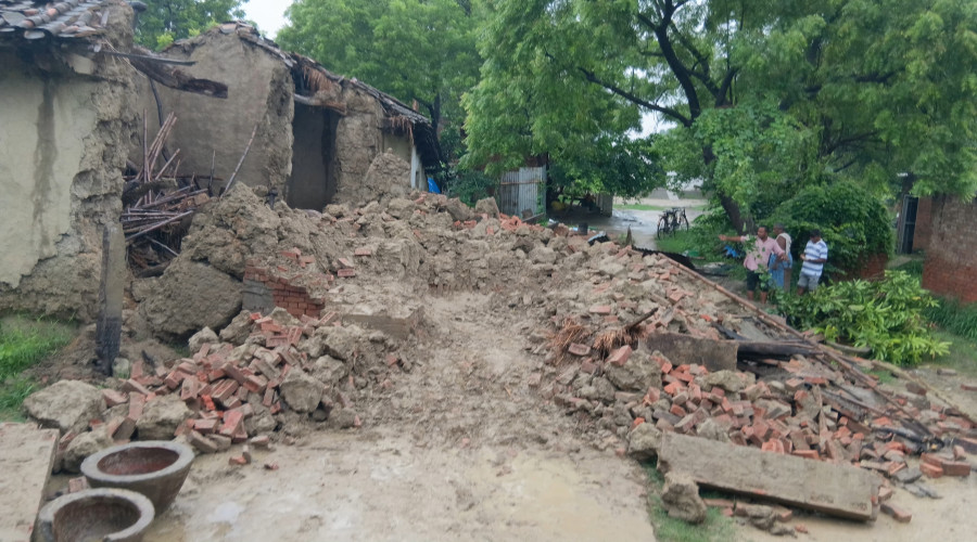 नई दिल्ली,राष्ट्रीय राजधानी दिल्ली में भारी बारिश के कारण जैतपुर के हरि नगर इलाके में दीवार का एक...