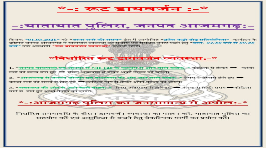आजमगढ़। थाना रानी की सराय क्षेत्र में 01...