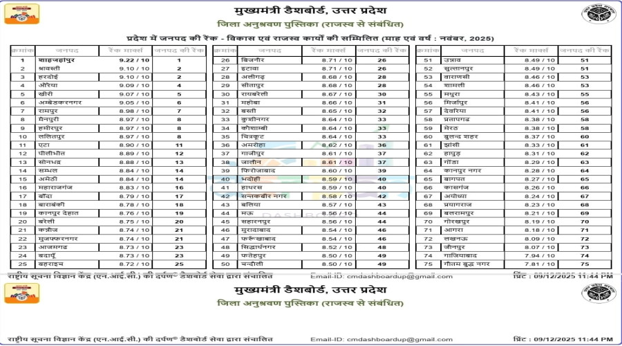 लखनऊ| विकास और राजस्व कार्यों में शाहजहांपुर जिला अव्वल आया है जबकि आज़मगढ़ 23वे, अंबेडकर नगर की...