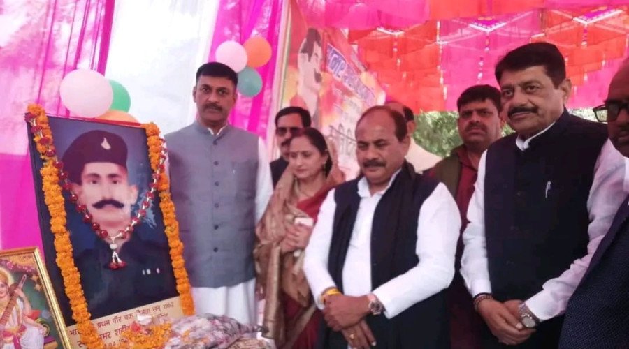 आजमगढ़ जनपद के सगड़ी तहसील क्षेत्र के पुनापार बड़ागांव में वीर चक्र विजेता शहीद सौदागर सिंह की मूर्ति पर कार्यक्रम में आए हुए लोगों...