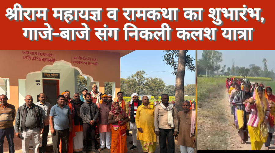 श्रीराम महायज्ञ व रामकथा का शुभारंभ, गाजे-बाजे संग निकली कलश यात्रा