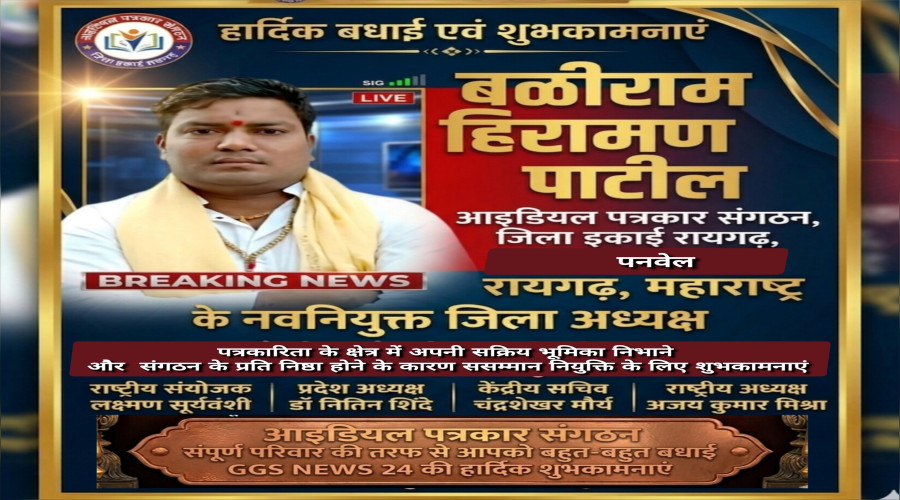 बळीराम हिरामण पाटील आइडियल पत्रकार संगठन रायगढ़ के जिला अध्यक्ष नियुक्...