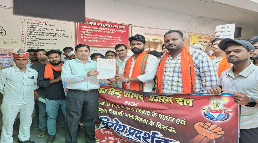 बजरंगदल द्वारा लव आदि जिहाद को लेकर राष्ट्रपति को संबोधित ज्ञापन एसडीएम को दिया गया