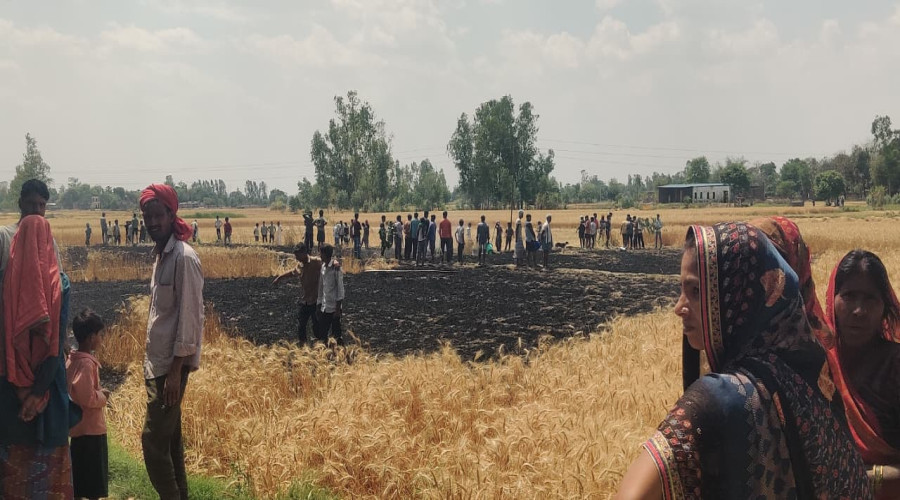 गेँहू के खेत में आग लग जाने से करीब एक बीघा गेहूं की फसल जलकर राख