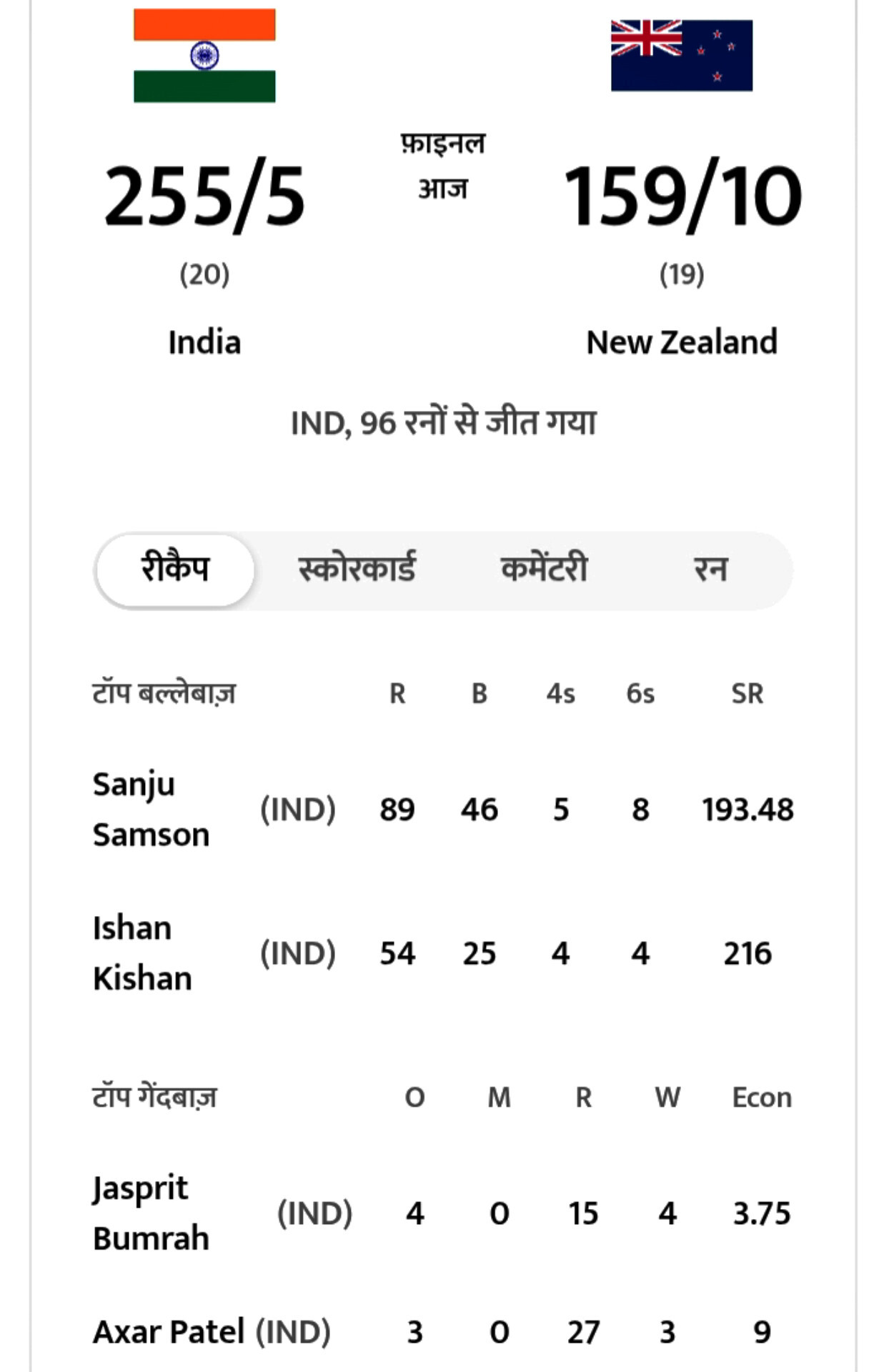 👉 भारत का कुल स्कोर: 255/5 (20 ओवर)