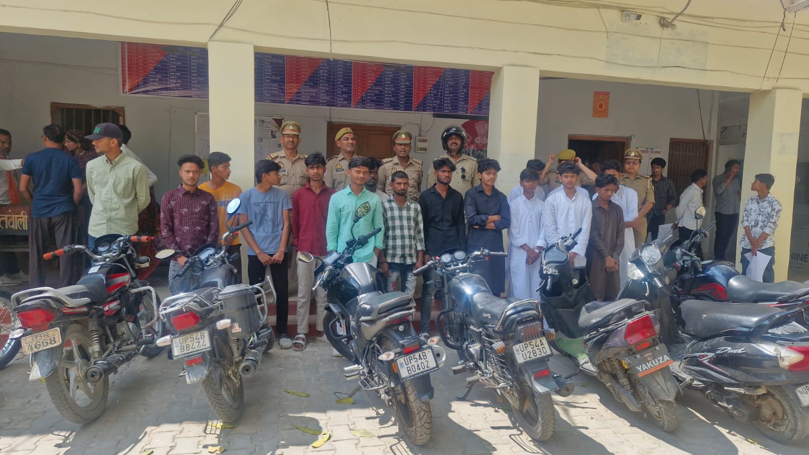 घोसी कोतवाली की ऐंटी रोमियों टीम ने सोलह मनचलों को हिरासत में लेकर किया चालान