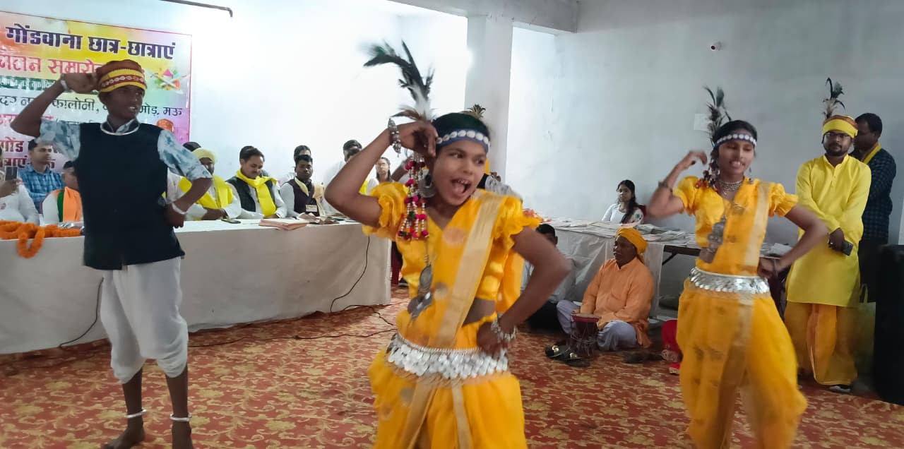 मऊ। घोसी ।अखिल भारत वर्षीय गोंड महा सभा की ओर से रविवार को सुंदर नगर स्थित गोंड भवन में गोंडवाना छात्रों का होली मिलन समारोह आयोजित किया गया। कार्यक्रम में देवरिया जनपद के मुंडेरा से आए आदिवासी बच्चों ने पारंपरिक नृत्य प्रस्तुत कर सभी को मंत्रमुग्ध कर दिया।