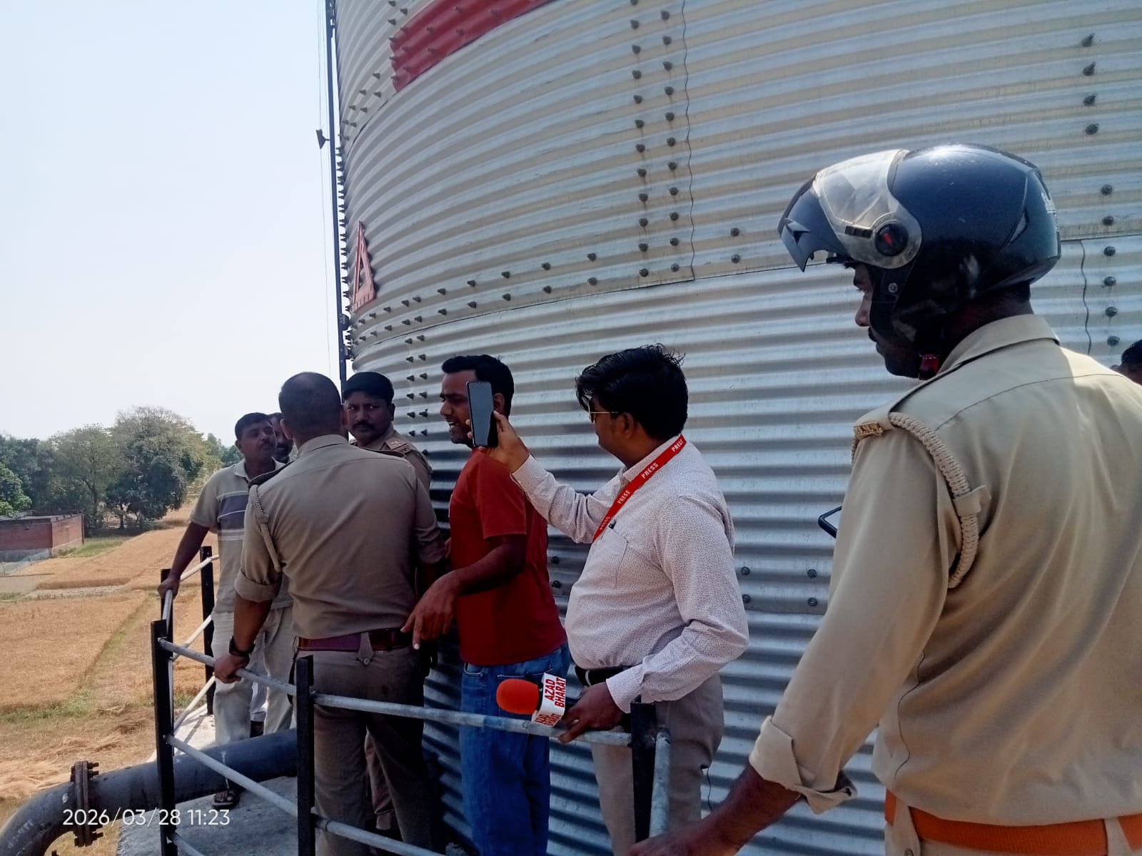 अम्बारी आजमगढ़।फूलपुर कोतवाली क्षेत्र के हथनौरा कला निवासी कमलेश यादव पुत्र राम दवर यादव ने आज सुबह लगभग साढ़े आठ बजे जल जीवन मिशन द्वारा बनाये गए पानी के टैंक पर चढ़ गया, ये घटना क्रम ग्रामीणों में आग की तरह फैल गई और तमाम ग्रामीण पानी की टंकी के नीचे इकट्ठा हो गए। लोगों का कहना है कि कमलेश गार्ड के पद पर पिछले एक साल से नियुक्त हैं और लगातर कार्यरत हैं किन्तु कई दिनों से परेशान रहते थे और किसी को बगैर कुछ कहे सुसाइड करने के उद्देश्य से पानी के टैंक पर चढ़ गए। पत्रकारों द्वारा कमलेश से बात करने पर पता चला कि प्रधान पति द्वारा मानसिक रूप से परेशान करने व 6000 की नौकरी से हटाने व अपने किसी स्वजन को उस स्थान पर स्थापित करने का आरोप लगया है तो प्रधान पति (प्रधानाध्यापक प्रा. पा हथनौरा कला)सुग्रीव कुमार पत्रकारों से बातचीत में कमलेश द्वारा लगाए गए सभी आरोपों सेअपने आपको अलग रखते हुए पल्ला झड़ते नजर आये। ग्रामीणों के मुताबिक मास्टर साहब की पत्नी कुंजन गौतम आजमगढ़ जिले पर रहकर अपने बच्चों को पढ़ाई करवाती हैं प्रधानी का कार्यभार मास्टर साहब ही देखते हैं। कमलेश को समझा बुझाकर नौकरी न जाने के आश्वासन के बाद नीचे लेकर आये और एक सहमति पत्र लिखा गया जिसपर तमाम ग्रामीण व प्रशासन के सामने मास्टर साहब खुद ग्राम प्रधान कुंजन का हस्ताक्षर किये। एक प्रयमारी का प्रधानाध्यापक जिसका कार्य बच्चों के पठन-पाठन का होता है।