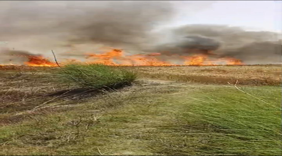 सरायगंगापब्बी ताल मे अज्ञात कारणों से लगी आग में आधा दर्जन किसानों की गेहूं की फसल जलकल हुई राख
