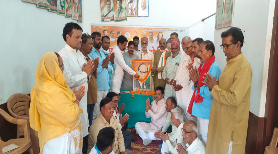 देंवरिया।टाउन हॉल स्थित कांग्रेस कार्यालय में जिला अध्यक्ष विजय शेखर मल्ल 'रोशन' के नेतृत्व में भारत रत्न संविधान निर्माता बाबा साहेब डॉ भीमराव अम्बेडकर की जयंती श्रद्धा पूर्वक आयोजित की गई। पुष्पांजलि अर्पित करते हुए जिलाध्यक्ष विजय शेखर मल्ल 'रोशन' ने बाबा साहेब डॉ. भीमराव अंबेडकर के विचारों एवं उनके जीवन संघर्ष के बारे में चर्चा की। उनके शिक्षित बनो, संगठित बनो व संघर्ष करो के उपदेश को आत्मसात करने की बात कही। उपस्थित कांग्रेस जनों ने वंचित व शोषित तबके के लोगों को जागरुक करने एवं सहयोग करने का संकल्प लिया। कार्यक्रम में मुख्य रूप से अरविन्द शाही, अब्दुल जब्बार, रामशीष साहनी, जुलेखा खातून,भरत मणि त्रिपाठी, नौशाद खान एपी,मुकुंद भास्कर मणि, वरुण राय,संजीव कुमार मिश्रा,शहनाज जफर, मनोज मणि, रामप्रवेश सिंह, रजनीश प्रसाद, मिर्जा खुर्शीद अहमद, धर्मेंद्र कुमार पाण्डेय,शिव शंकर सिंह,विजय शंकर मिश्रा, सुभाष राय, जवाहरलाल बरनवाल, सत्यप्रकाश मणि जवाहरलाल चौहान,सुहेल अंसारी,पन्नालाल पाठक,राजकुमार यादव, रमेश कुशवाहा, धर्मवीर भारती,डॉ.सी.पी.चौहान, निर्मला वर्मा, योगेश मिश्रा, गोपाल दुबे,वासुदेव तिवारी, डॉ.संजय गुप्ता, दुर्गेश मिश्रा आदि मौजूद रहे।