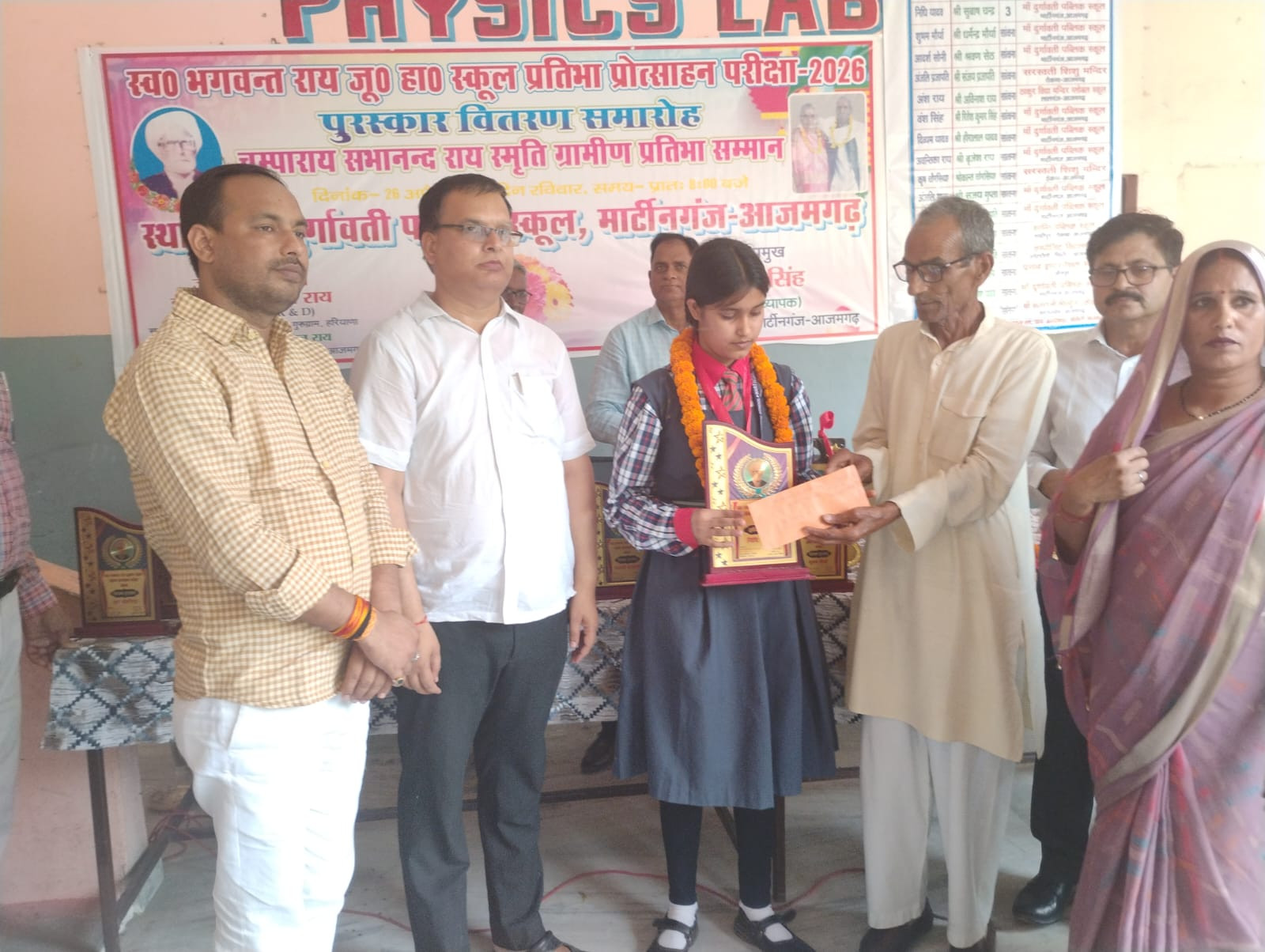 दीदारगंज, आजमगढ़।मार्टीनगंज तहसील क्षेत्र के मां दुर्गावती पब्लिक स्कूल, मार्टीनगंज परिसर में स्व. भगवन्त राय जूनियर हाई स्कूल प्रतिभा प्रोत्साहन परीक्षा 2026 के अंतर्गत भव्य पुरस्कार वितरण समारोह का आयोजन किया गया। यह कार्यक्रम चम्पाराय एवं सभानन्द राय की स्मृति में ग्रामीण प्रतिभा सम्मान समारोह के रूप में आयोजित किया गया।