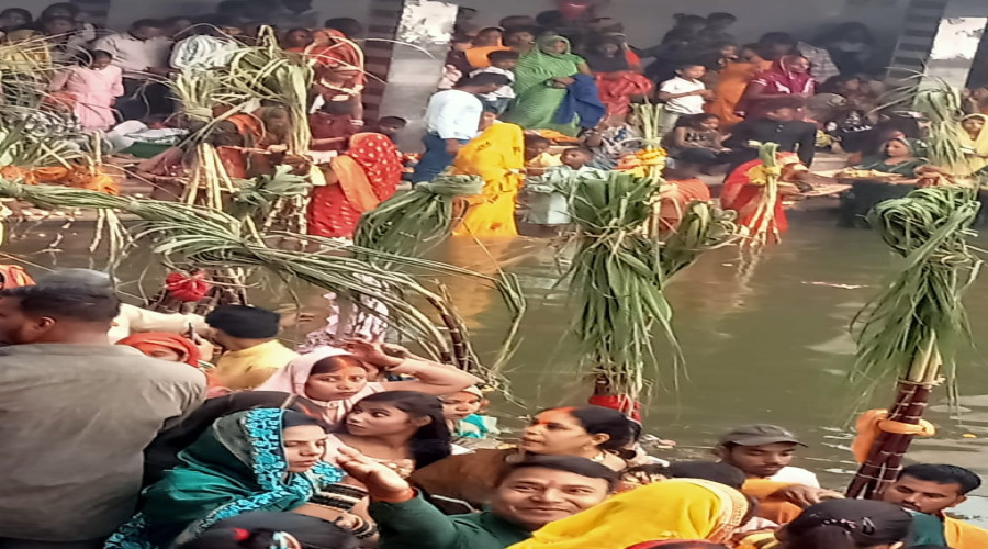 अतरौलीया में पूरब पोखरा पर डाला छठ का त्योहार हर्षो उल्लास के साथ मनाया गया.