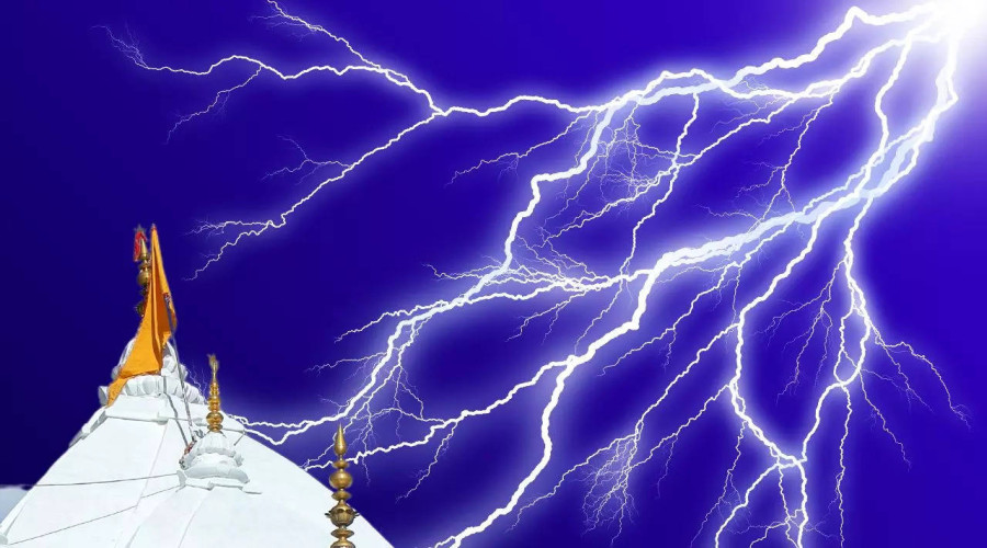 लखनऊ।यूपी के देवरिया जिले में रविवार को बारिश के बीच एक मंदिर पर आकाशीय बिजली गिरने से पु...
