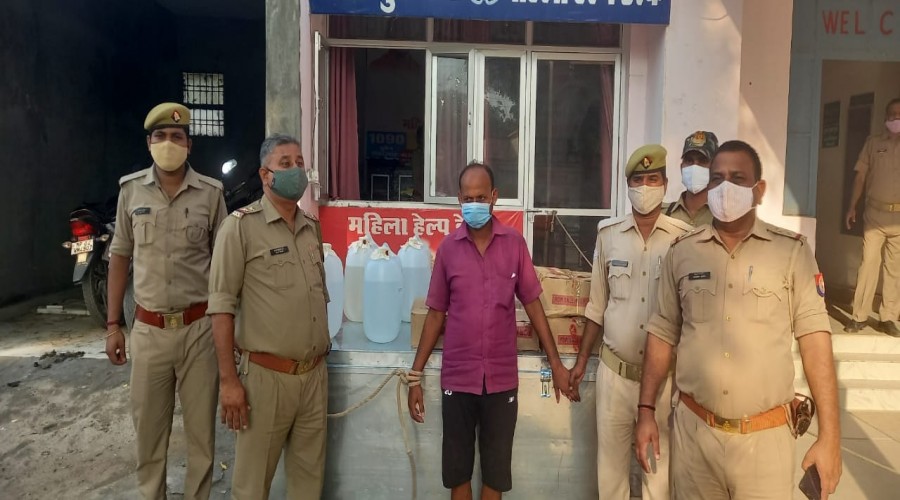 आज़मगढ़ थाना सिधारी में 50 ली0 अवैध देशी शराब व 100 ग्राम यूरिया व 50 ग्राम नौशादर के साथ एक अभिय...