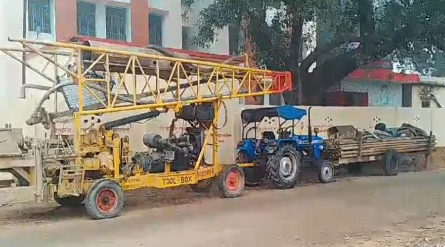 आजमगढ़ जनपद के रौनापार थाना क्षेत्र अंतर्गत सोनौरा के पास उत्तर प्रदेश जल निगम बोरिंग मशीन के ट्र...