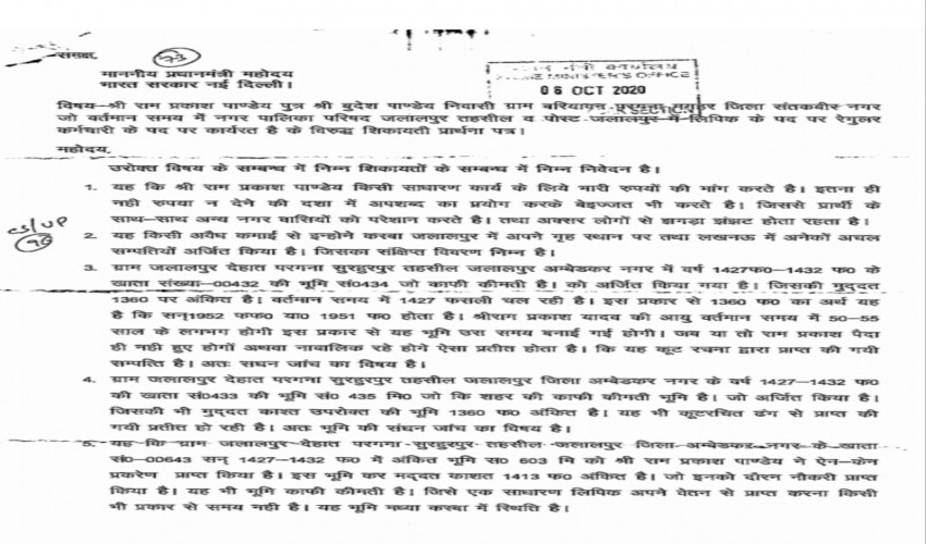 अम्बेडकर नगर उत्तर प्रदेश :जनपद के नगर पालिका परिषद जलालपुर मे तैनात एक लिपिक कर्मचारी पर आय से अ...