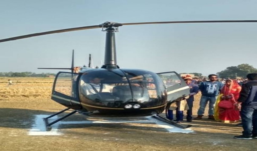 आजमगढ़ के छाऊ गांव में हेलीकॉप्टर से आई बारात बांदा निवासी बांदा उत्तर प्रदेश के पूर्व काबीना मंत...