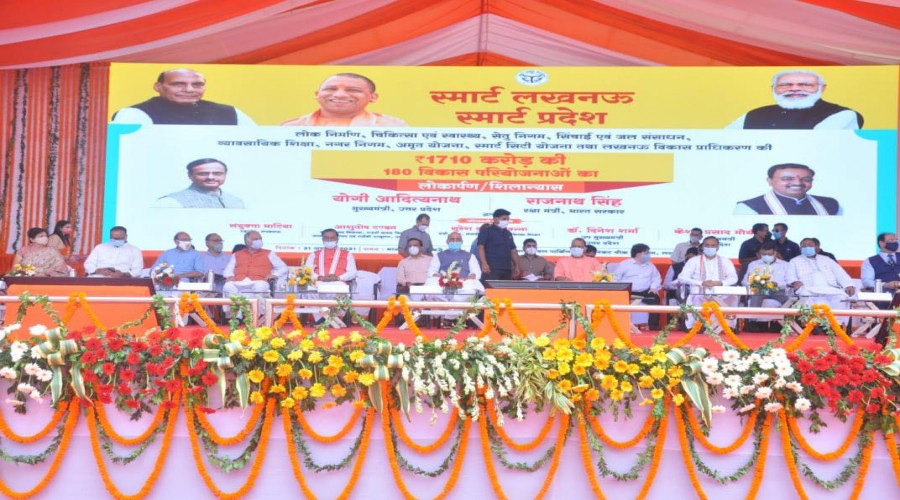 लखनऊ : उत्तर प्रदेश के मुख्यमंत्री योगी आदित्यनाथ एवं रक्षा मंत्री, भारत सरकार राजनाथ सिंह...