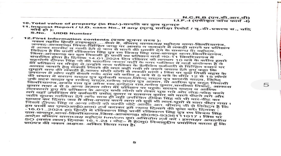 बिलरियागंज/आजमगढ़ । बिलरियागंज नगर पंचायत के पूर्व चेयरमैन रहे, मोहम्मद आरिफ, उनके 4 सहयोगी व नगर...