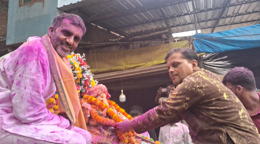 जलालपुर अम्बेडकर नगर। गणेश चतुर्थी पर भाजपा नगर महामंत्री आनंद मिश्र के निवास पर स्थापित भग...