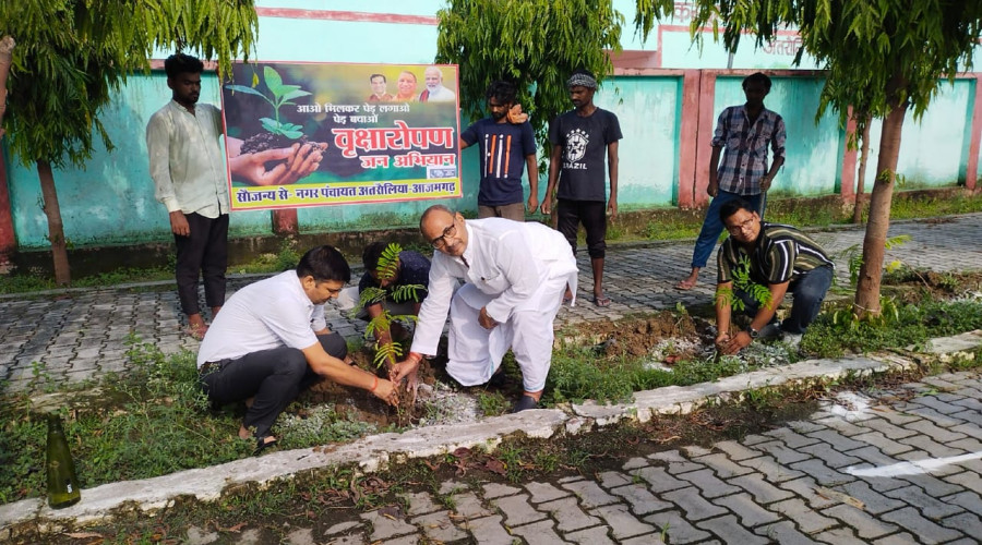 अतरौलिया। एक वृक्ष 10 पुत्र समान, वृक्ष धरा के भूषण है दूर करता प्रदूषण है ,के नारों से बुलंद हुआ...