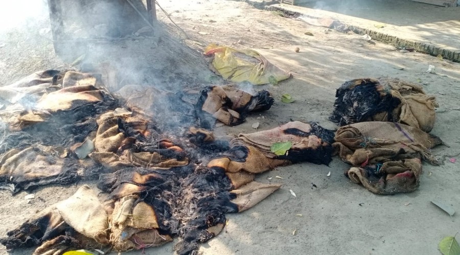 अतरौलिया।संदिग्ध परिस्थितियों में एग्रो धान क्रय केंद्र परमेश्वर पुर अतरौलिया में लगी आग, पत्रावल...