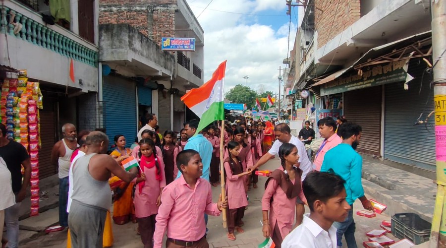 अतरौलिया आज़मगढ़। विद्यालय के बच्चों ने निकाली प्रभात फेरी,झंडा लेकर नगर का किया भ्रमण ।