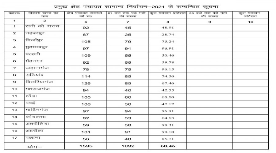देखिए ताजा अपडेट आज़मगढ़ के ब्लॉक प्रमुखी चुनावी परिणाम