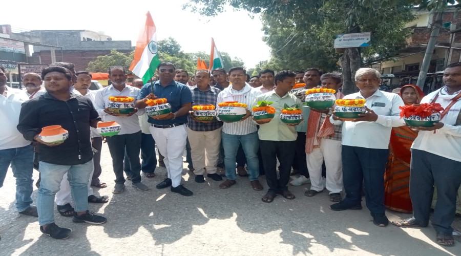 अम्बारी /आजमगढ़: मेरी माटी मेरा देश कार्यक्रम के तहत पवई विकास खण्ड के अम्बारी बाजार से विभिन्न...