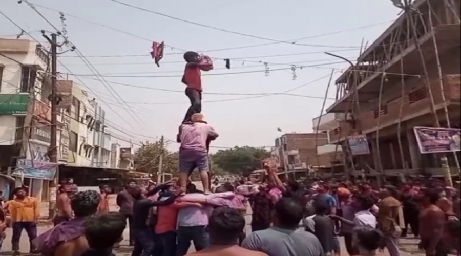 जलालपुर अम्बेडकर नगर । युवाओं ने मटकी फोड़कर होली खेली ।होली महोत्सव के तहत कस्बे में जगह-जग...