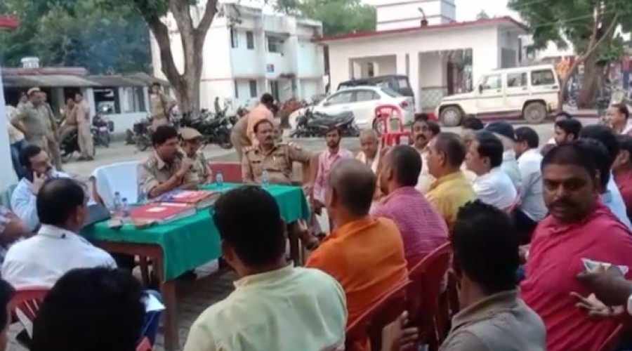 अम्बेडकर नगर । दशहरा/दुर्गा-पूजा पर्व को सकुशल निपटाने के लिए थाना परिसर जलालपुर में आयोजित प...