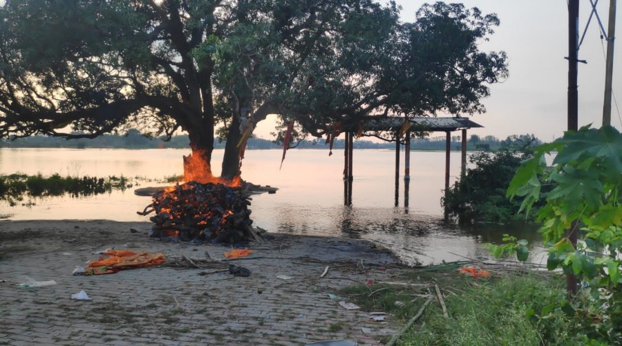 जलालपुर अंबेडकर नगर । तमसा नदी के बढ़ते जलस्तर के चलते बाढ़ के पानी ने बालापुर घाट के अंत्येष्टि...