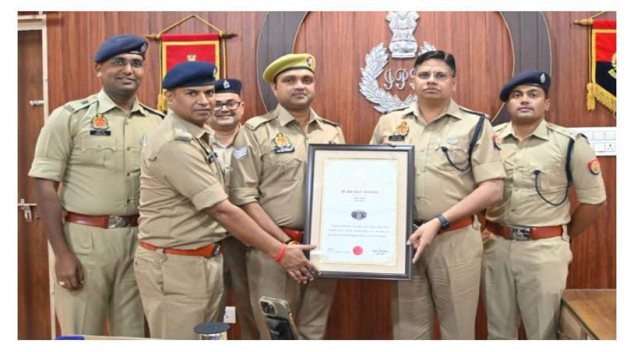 आजमगढ़।पुलिस अधीक्षक हेमराज मीना द्वारा साइबर सेल के मुख्य आरक्षी ओम प्रकाश जायसवाल को सिल्वर मेड...
