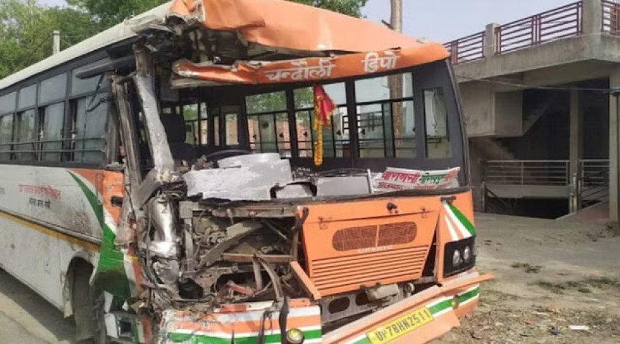 आजमगढ़। आजमगढ़ जिले में जुनेदगंज-भंवरनाथ मार्ग पर शुक्रवार दोपहर सोनौली से आ रही रोडवेज की बस और ट्...