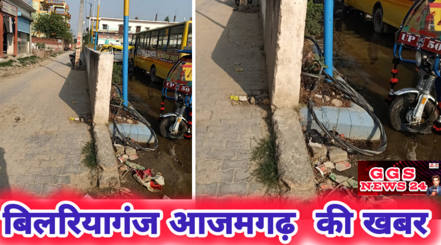 बिलरियागंज आजमगढ़। स्थानीय नगर पालिका के शिव नगर वार्ड में आंधी और बारिस से केबल टूटक...