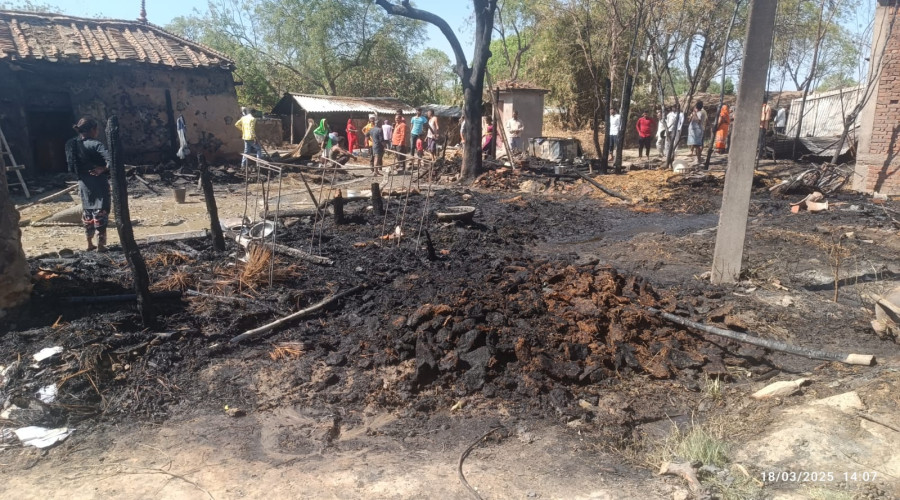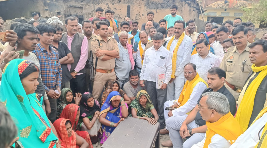अहरौला आजमगढ़ - गुरुवार को कैबिनेट मंत्री ओमप्रकाश राजभर केदारपुर राजभर बस्ती के आग पीड़ितो...