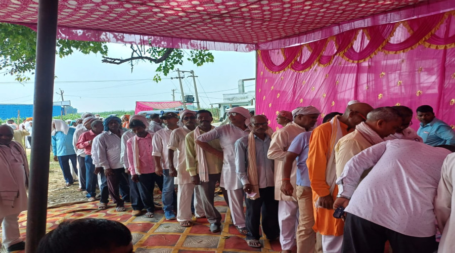 अतरौलिया, भीषण उमस एवं गर्मी के बावजूद कतार में खड़ा होकर लोगों ने किया मतदान का प्रयोग। सहकारी ग...