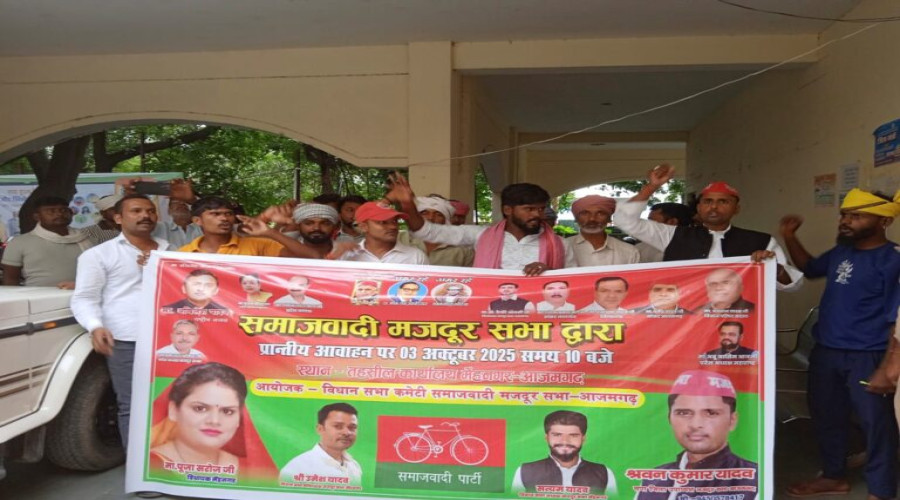 आज़मगढ़। समाजवादी पार्टी के आह्वान पर समाजवादी मजदूर सभा के कार्यकर्ताओं ने शुक्रवार को मेंहन...