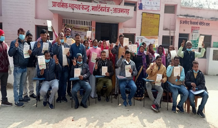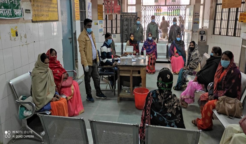 प्राथमिक स्वास्थ्य केन्द्र मार्टिनगंज पर गुरुवार को कोविड-19 के प्रथ...