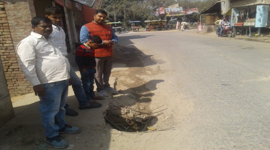 आज़मगढ़ तहबरपुर । तहबरपुर के इण्टर कालेज तिराहे पर नाले पर बना गड्ढा व विद्युत पोल जान लेवा साबित ह...