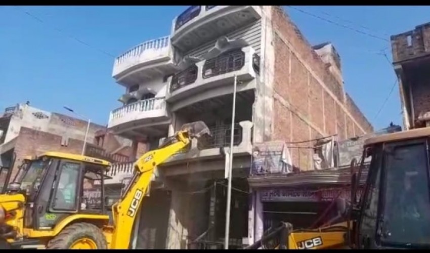 आज़मगढ़ टॉप टेन माफिया कुण्टू सिंह का मकान ध्वस्त करवाई के दौरान मौके पर डटे रहे डीएम और कप्तान &n...