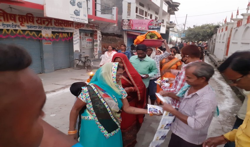 बिलरियागंज/ आजमगढ़ स्थानीय कस्बा बिलरियागंज के पंक्का पोखरा पर डुबते सुर्य को महिलाओं ने अर्घ दिय...