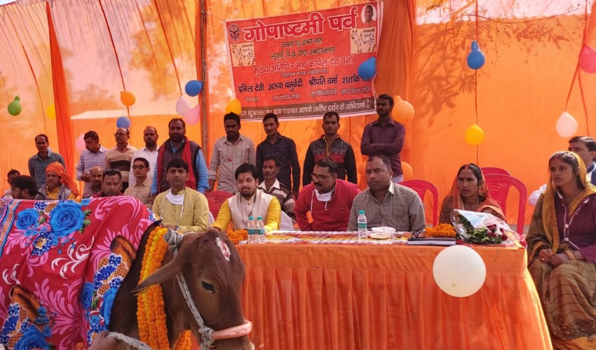अम्बेडकर नगर :भारतीय संस्कृति और सनातन धर्म में गाय को माता की उपमा से विभूषित करते हुए पूज्य मात...
