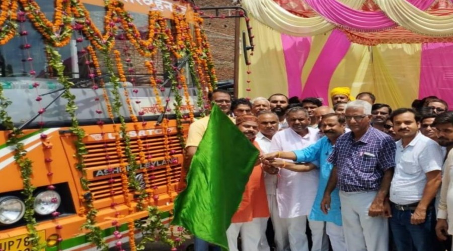 बहराइच - उत्तर प्रदेश परिवाहन निगम की एक बस को विधायक रामनिवास वर्मा ने कानपुर के लिए हरी झ...