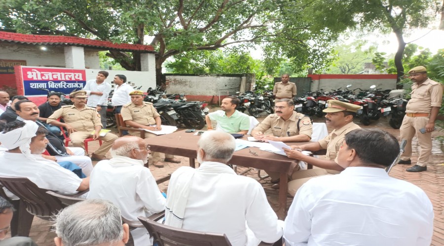 आजमगढ़ जनपद के बिलरियागंज थाना परिसर में मोहर्रम के मद्देनजर सगड़ी एसडीएम राजीव रतन सिंह के नेतृत...